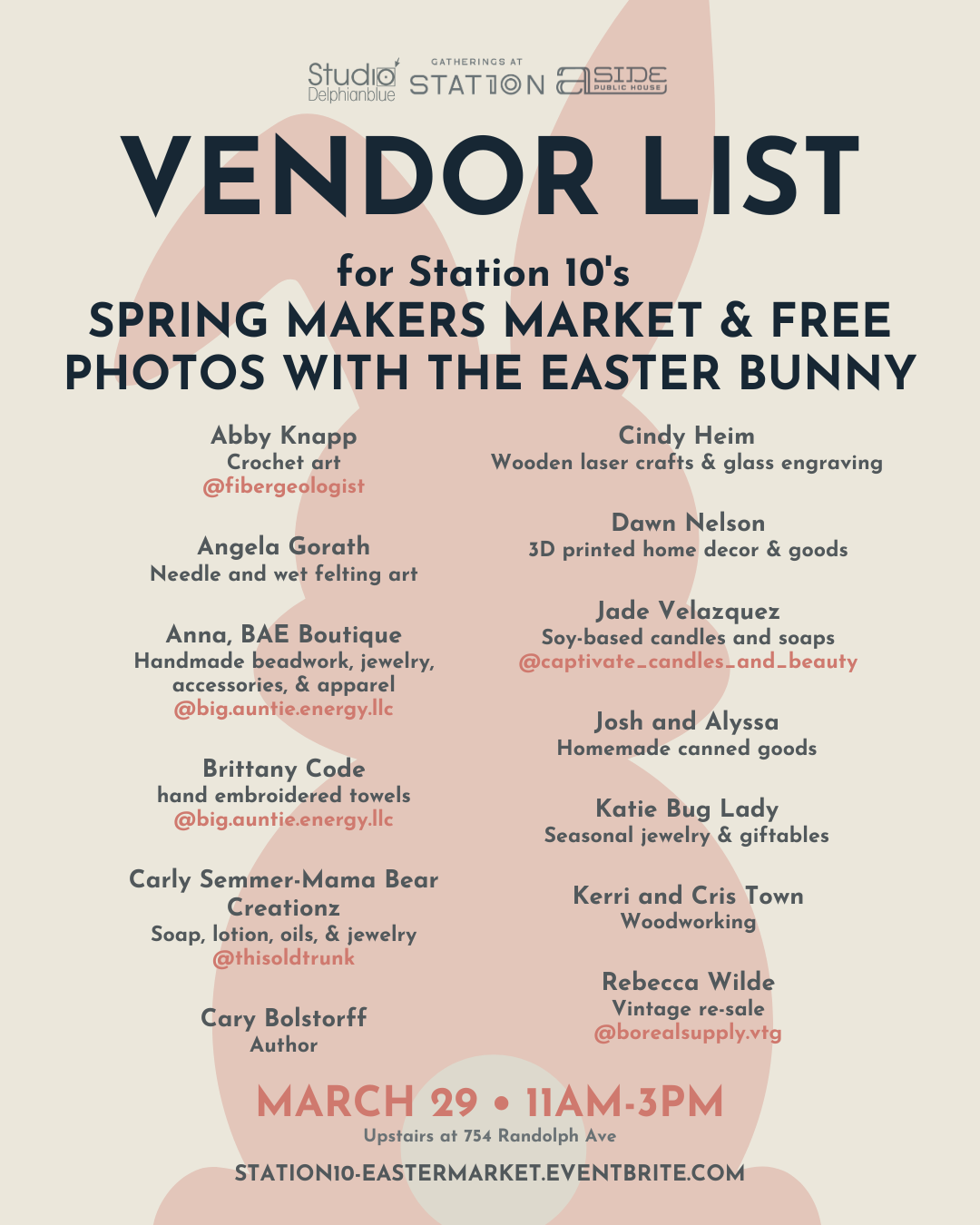 Sunday, March 29 from 11am - 3pm upstairs at Station 10!